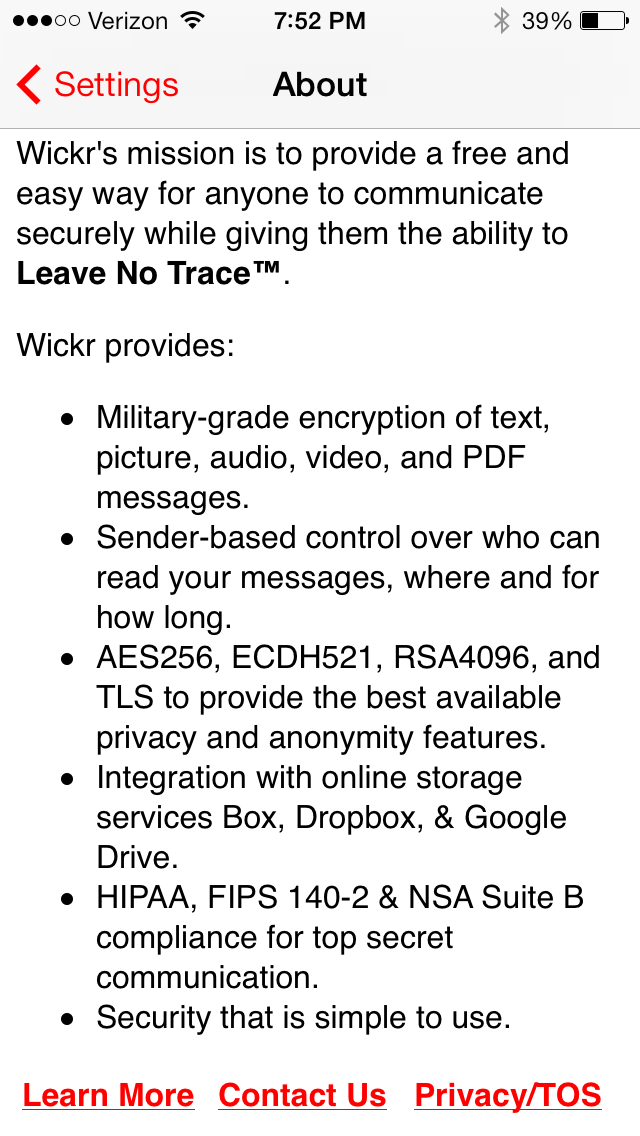 KM: I was excited to try out Wickr as a licensed psychologist who strives to adhere to the highest level of client confidentiality. This isn’t always simple in the era of ever-growing technology, particularly when many of my clients prefer text messaging over a telephone call. I was intrigued when reading that Wickr is a text messaging service that is HIPAA-compliant.